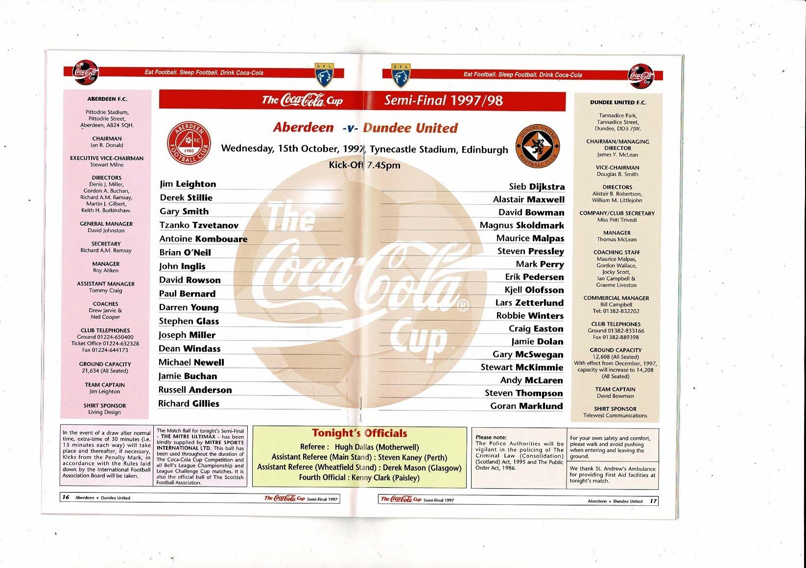 1997/98 Aberdeen v Dundee United Scottish League Cup Semi Final Football Programme