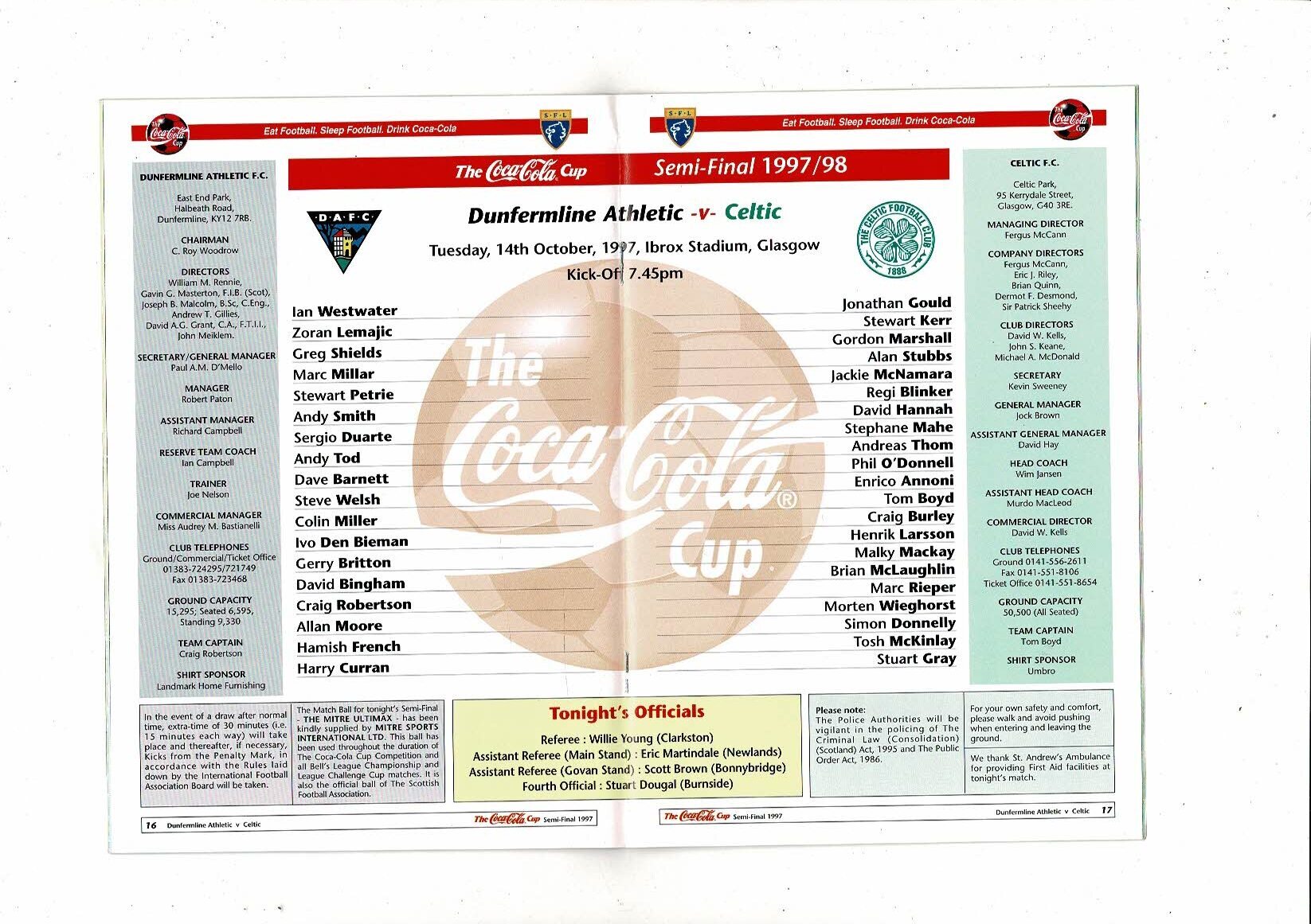 1997/98 Dunfermline v Celtic Scottish League Cup Semi Final Football Programme
