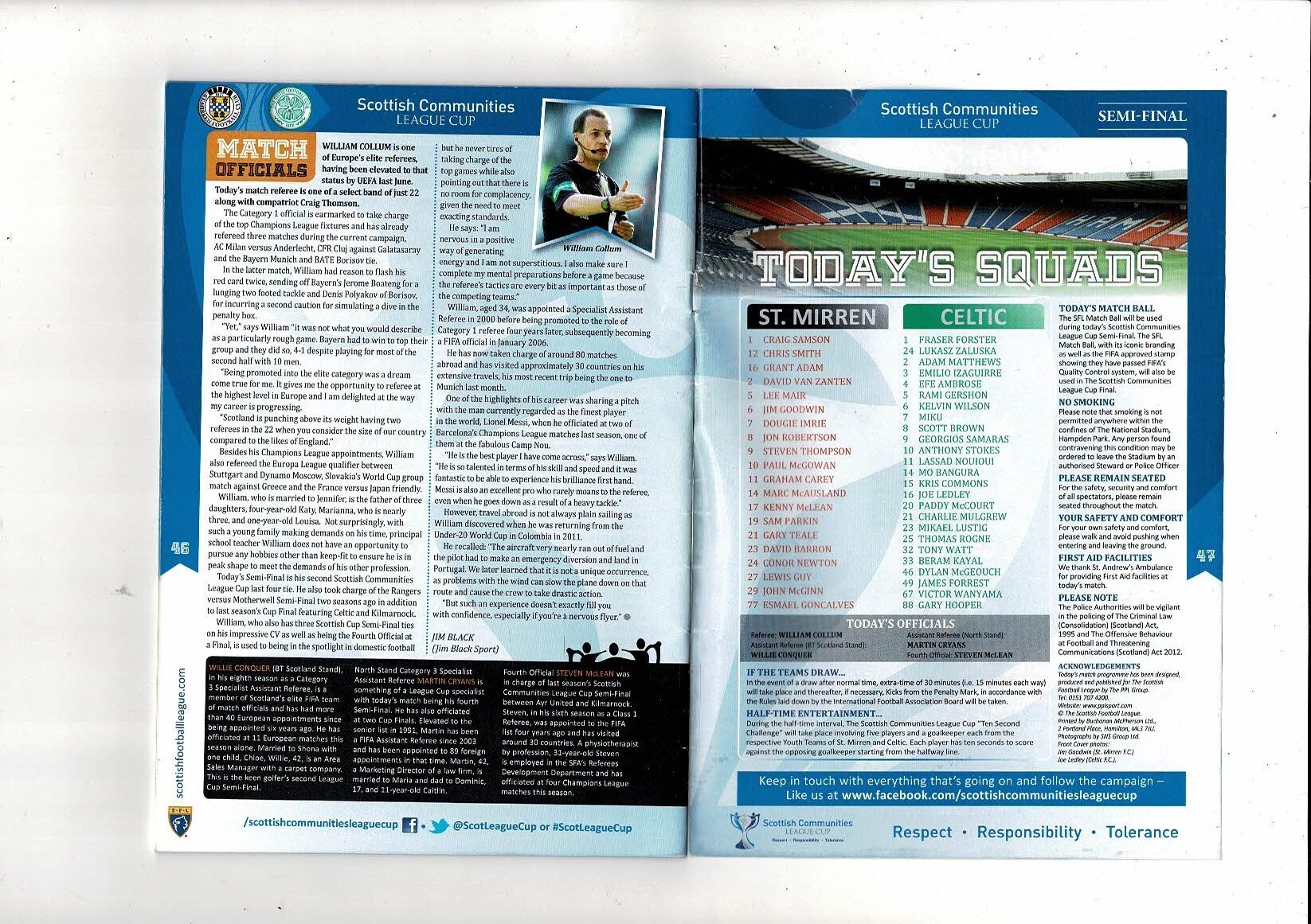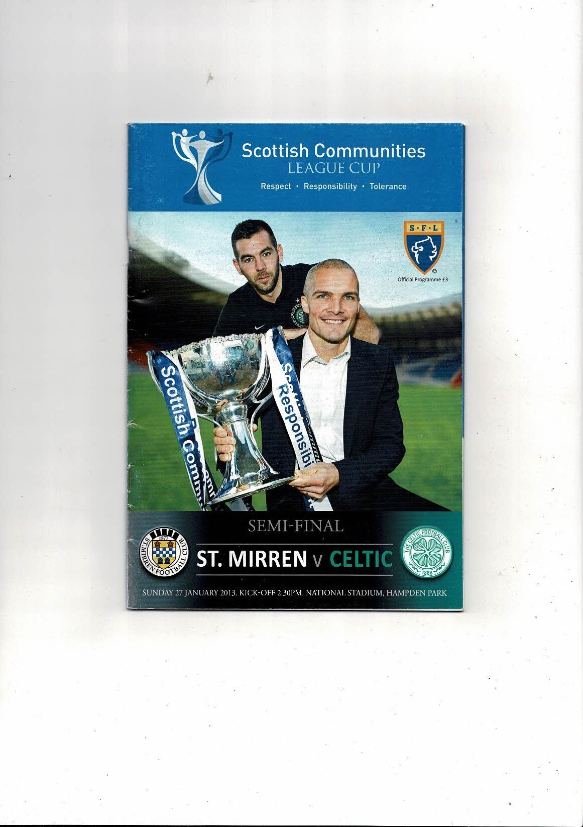 20012/13 St Mirren v Celtic Scottish League Cup Semi Final Programme