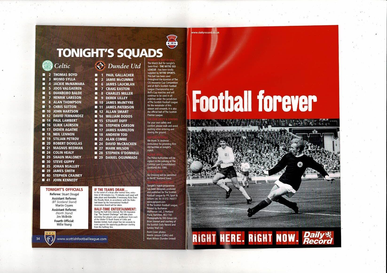 2002/03 Celtic v Dundee United Scottish League Cup Semi Final Programme