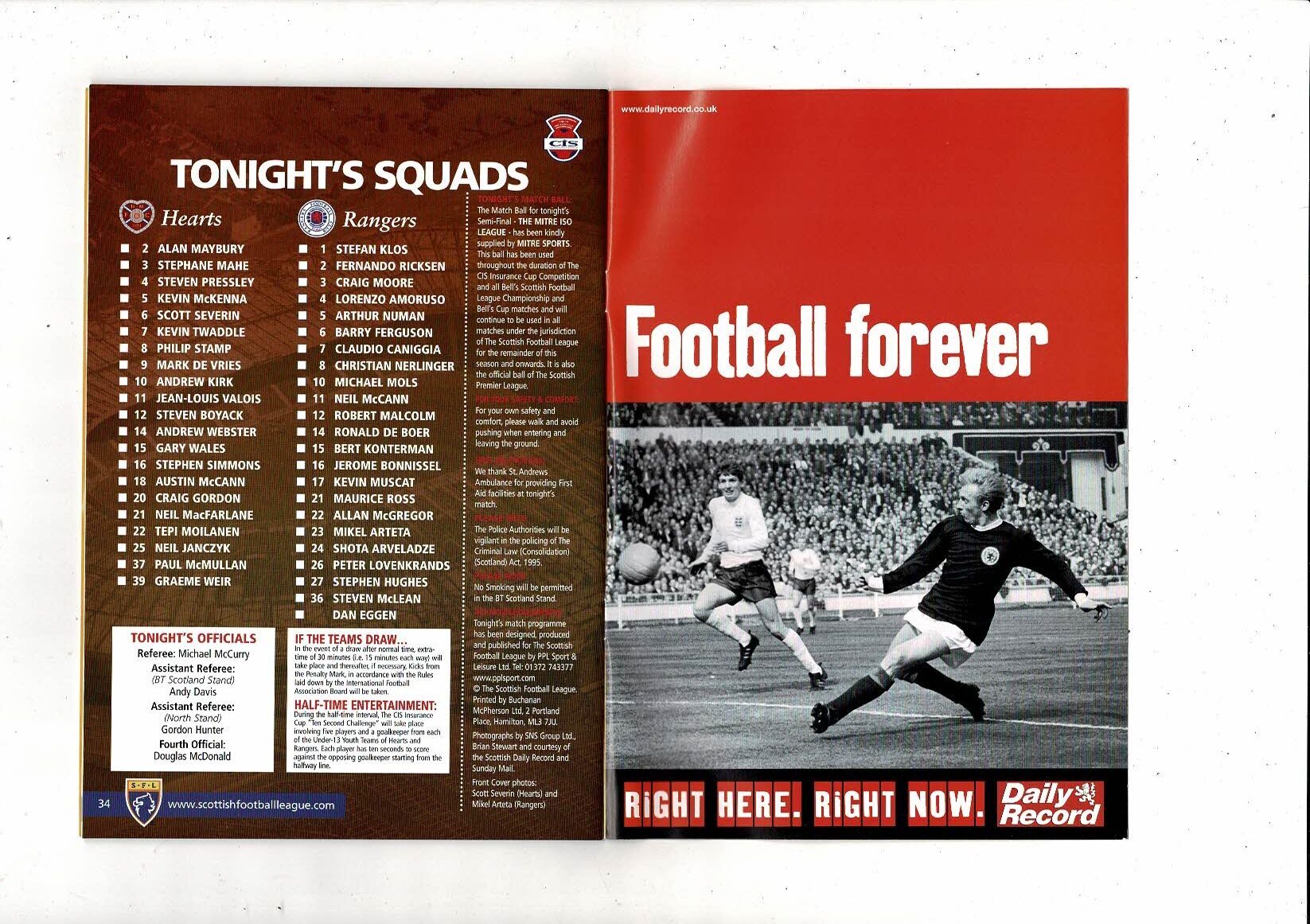 2002/03 Hearts v Rangers Scottish League Cup Semi Final Programme
