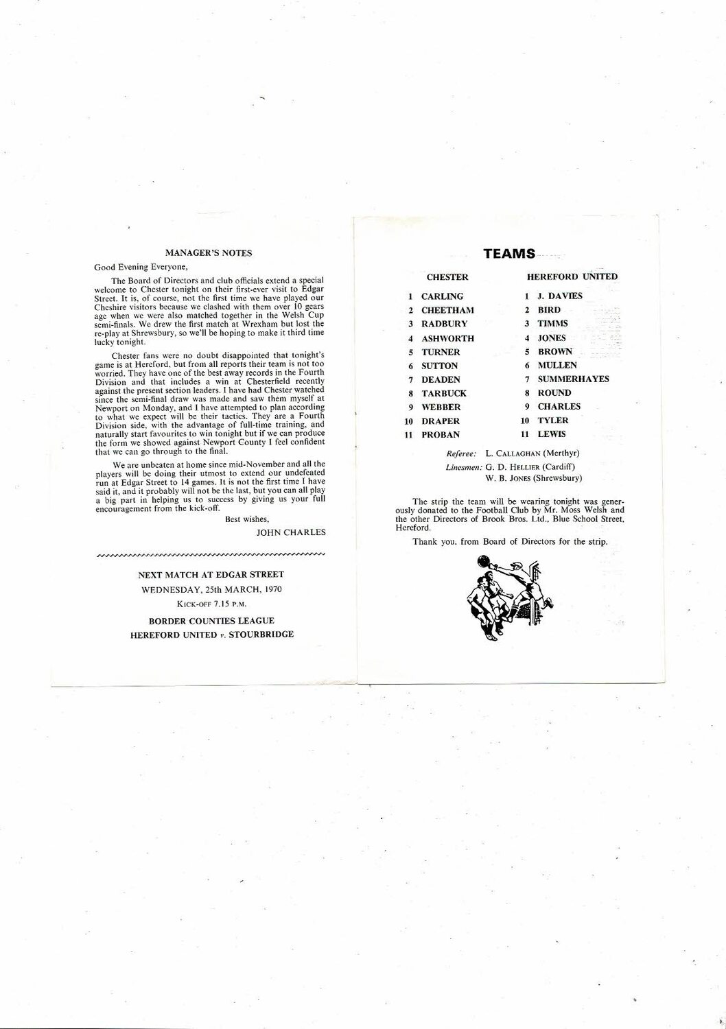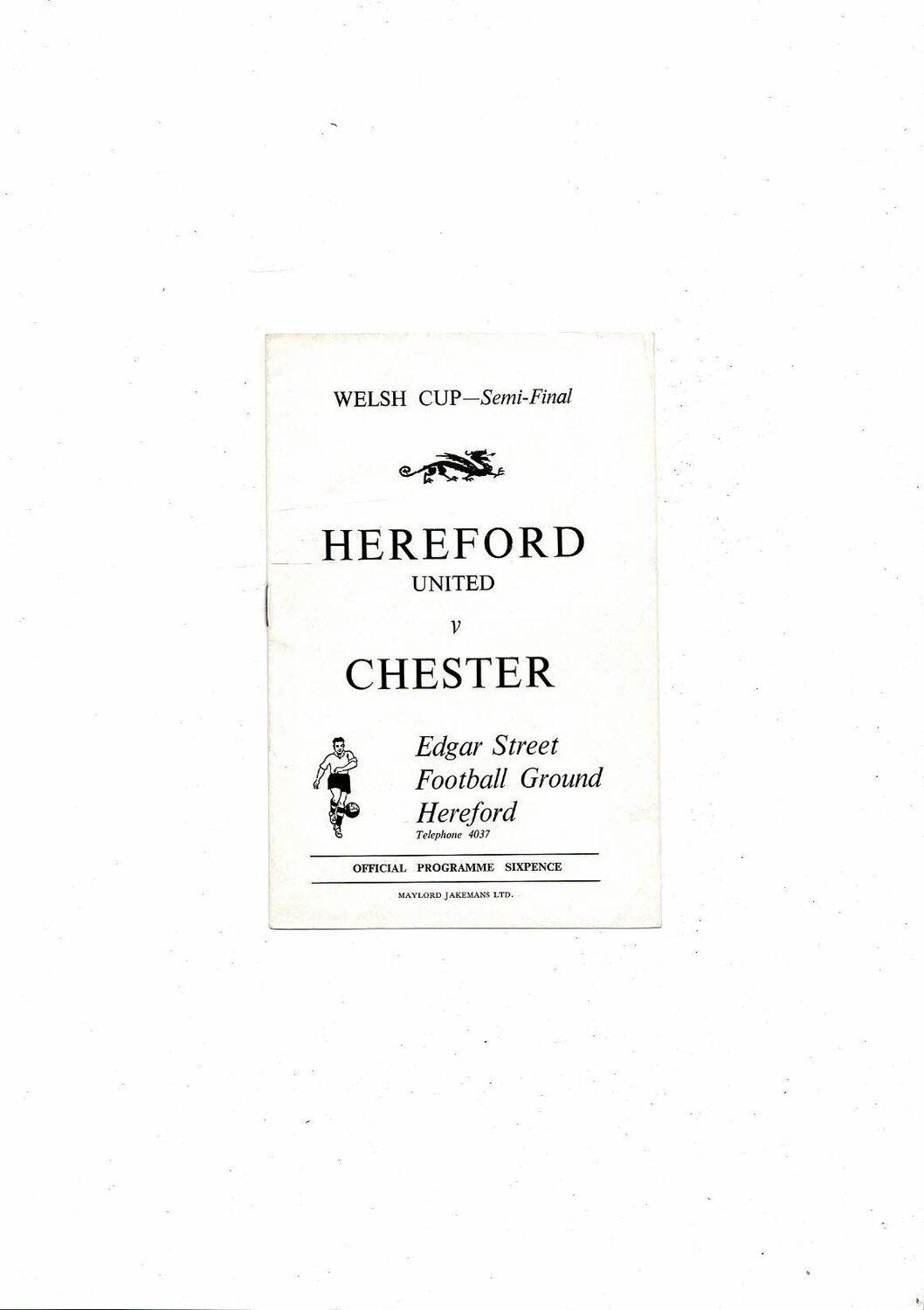 1969/70 Hereford United v Chester Welsh Cup Semi Final Football Programme