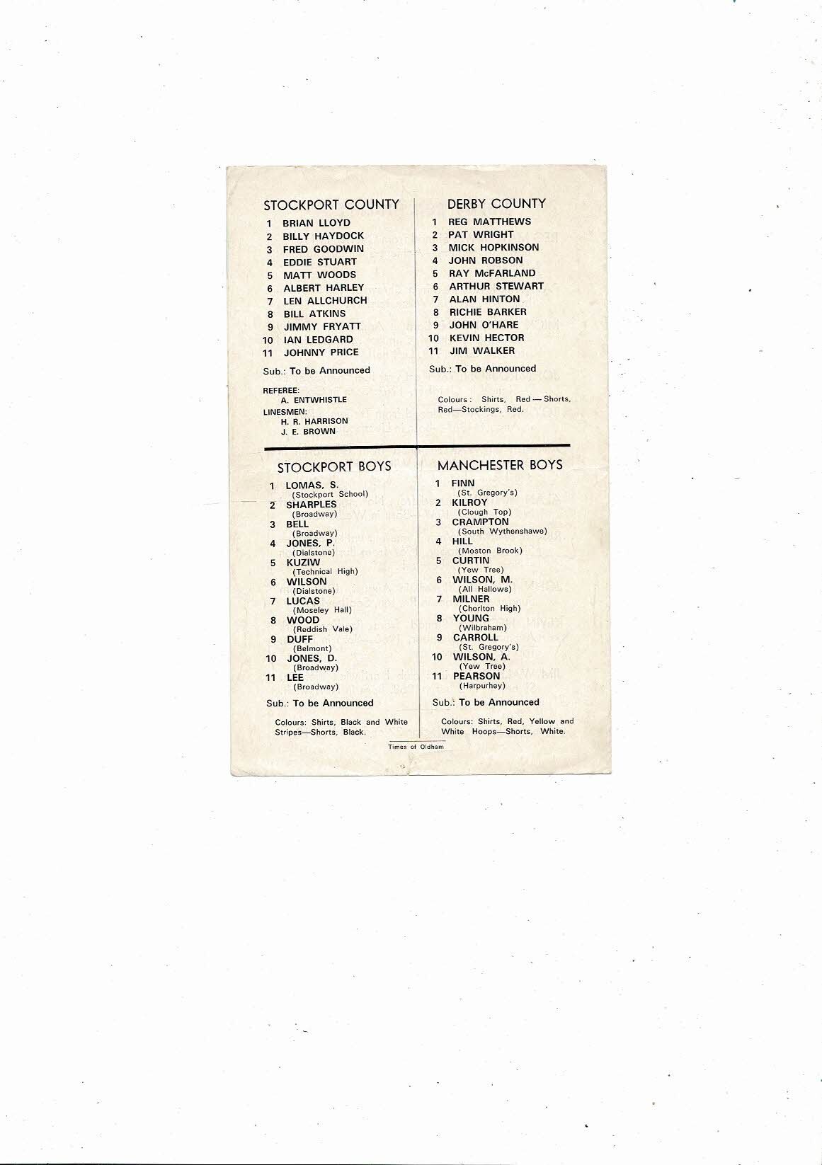 Also includes the Manchester Trophy Final game between Stockport Boys & Manchester Boys