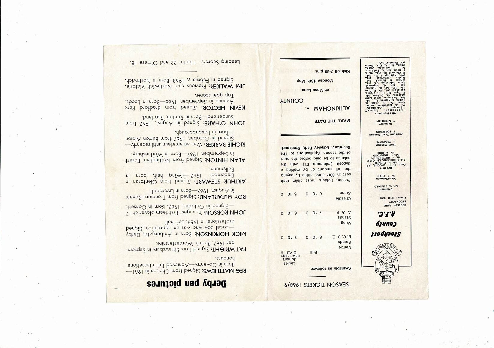 Stockport County v Derby County Friendly Football Programme 1967/68
