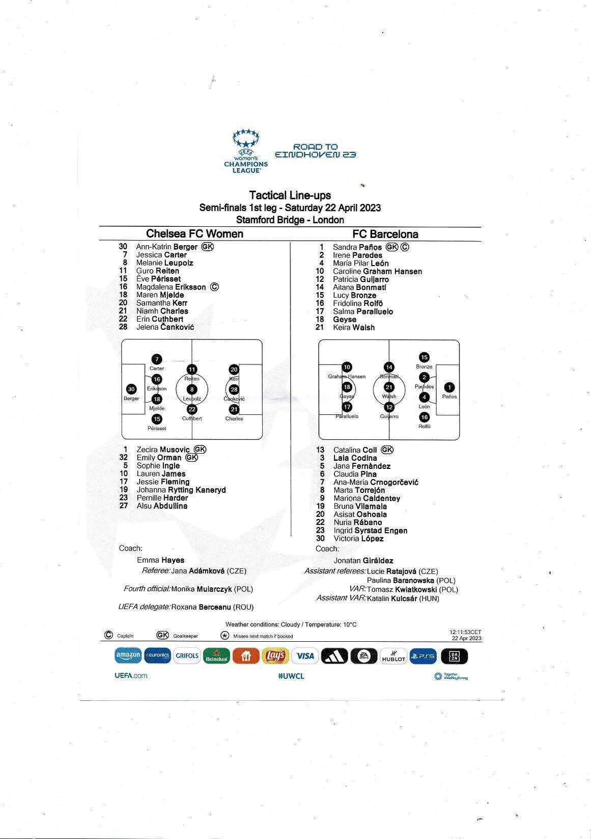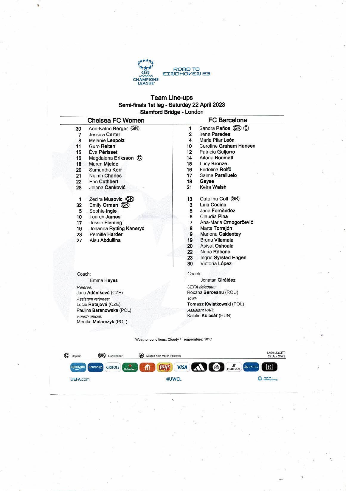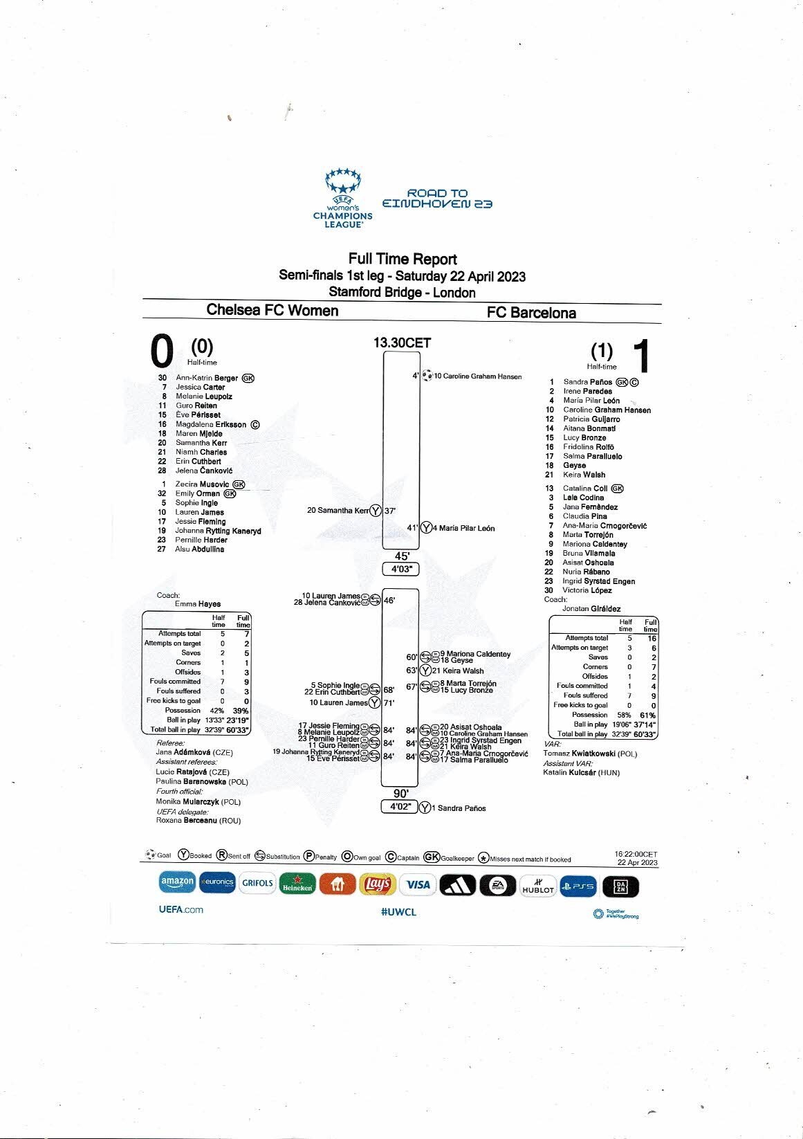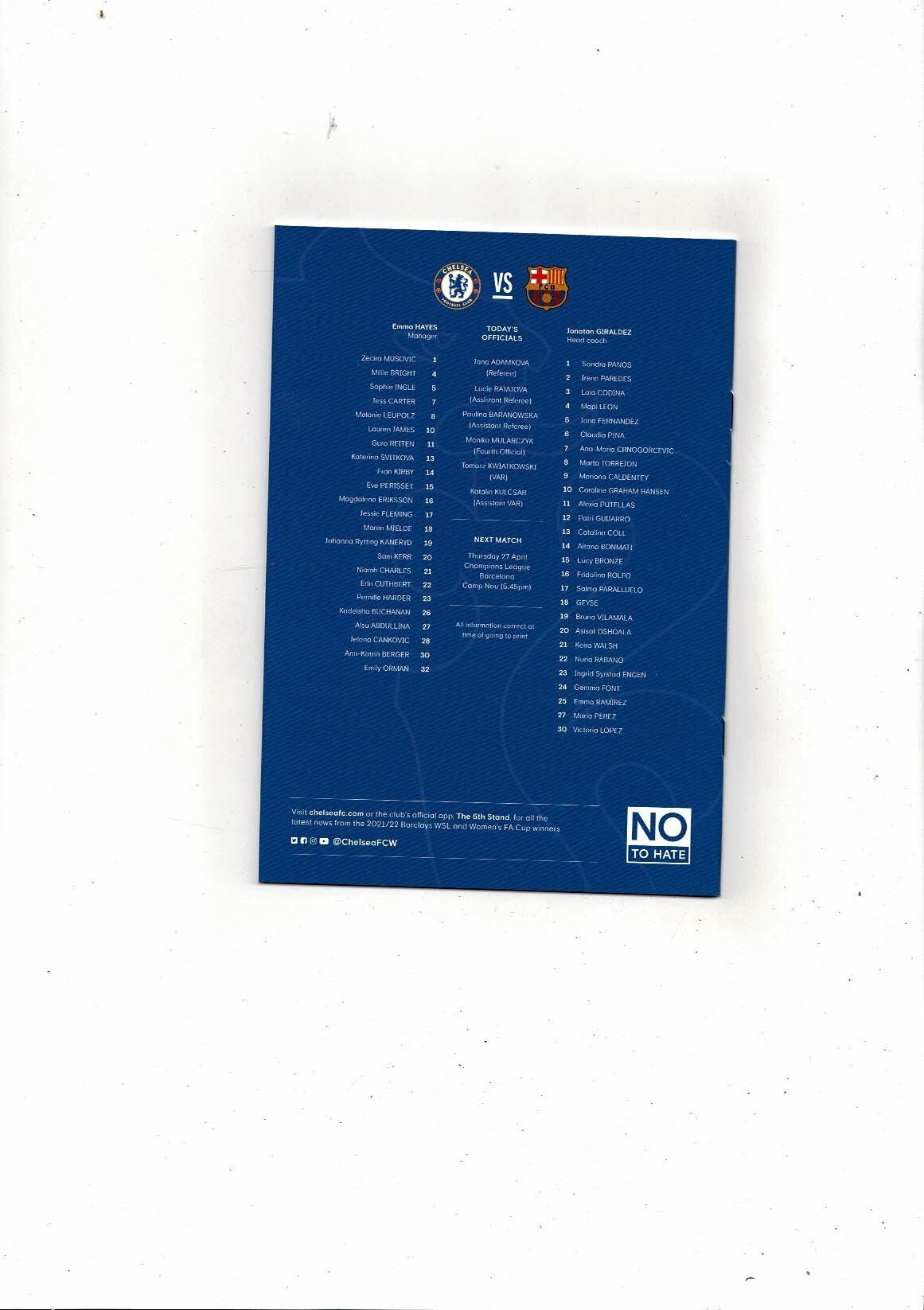 2022/23 Chelsea v Barcelona Womens Champions League Semi Final Football Progamme