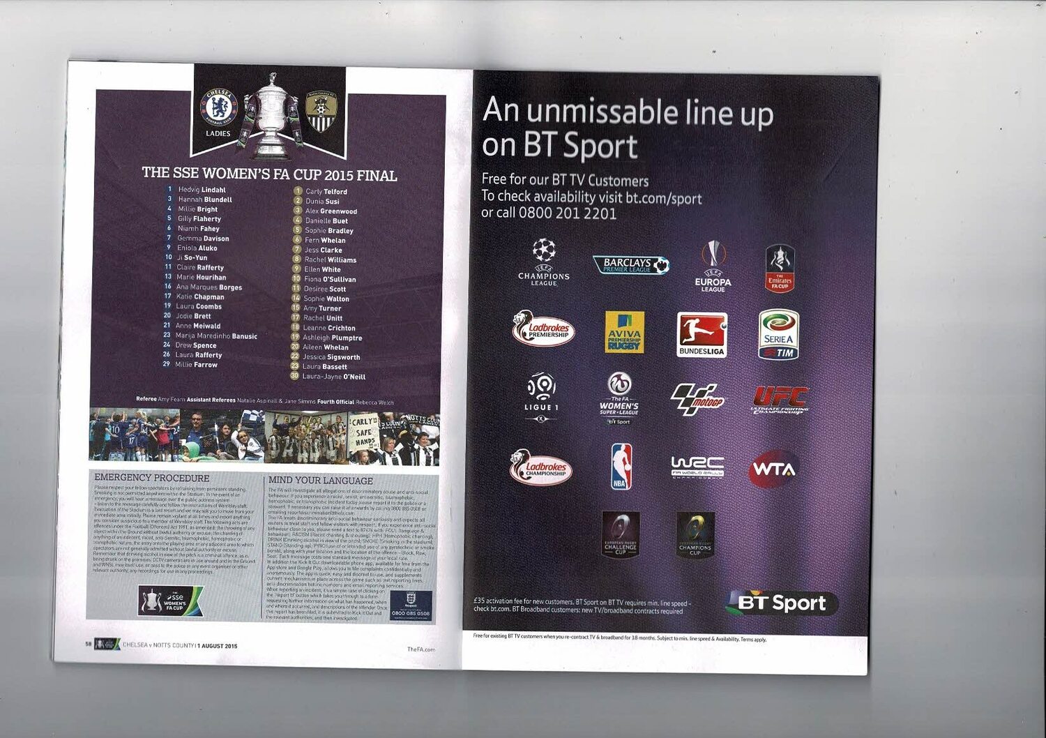 2015 Chelsea v Notts County Women's FA Cup FInal Football Programme