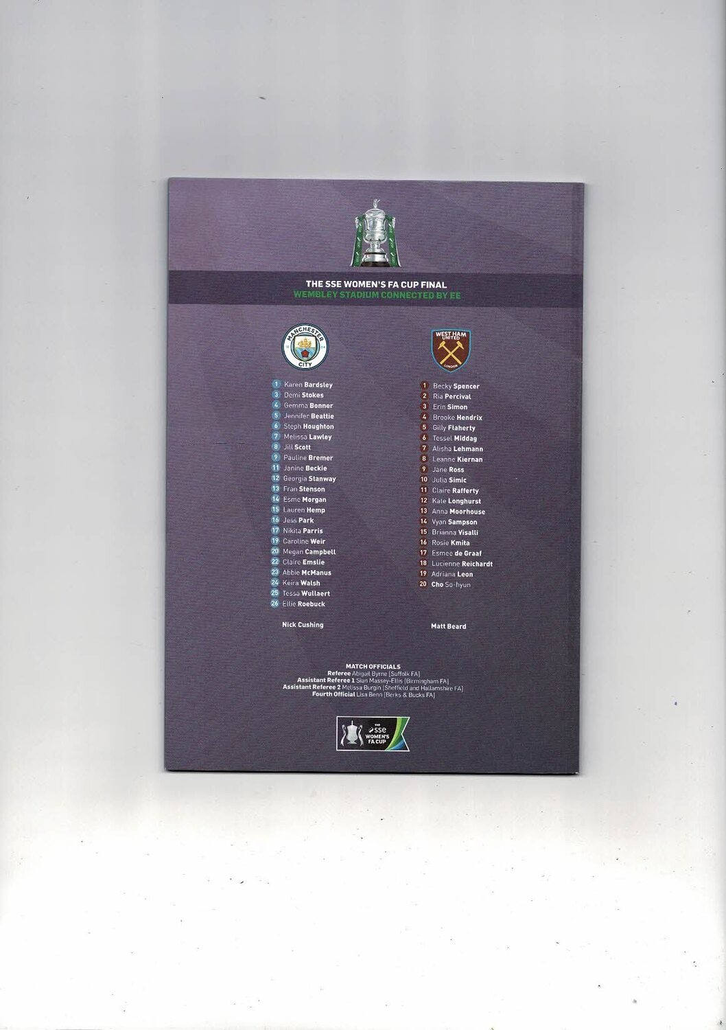 2019 Manchester City v West Ham United Women's FA Cup FInal Football Programme