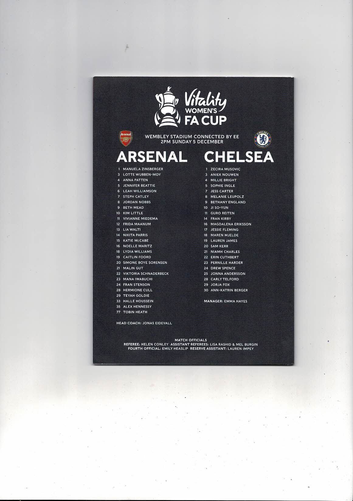 2021 Arsenal v Chelsea Women's FA Cup Final Football Programme