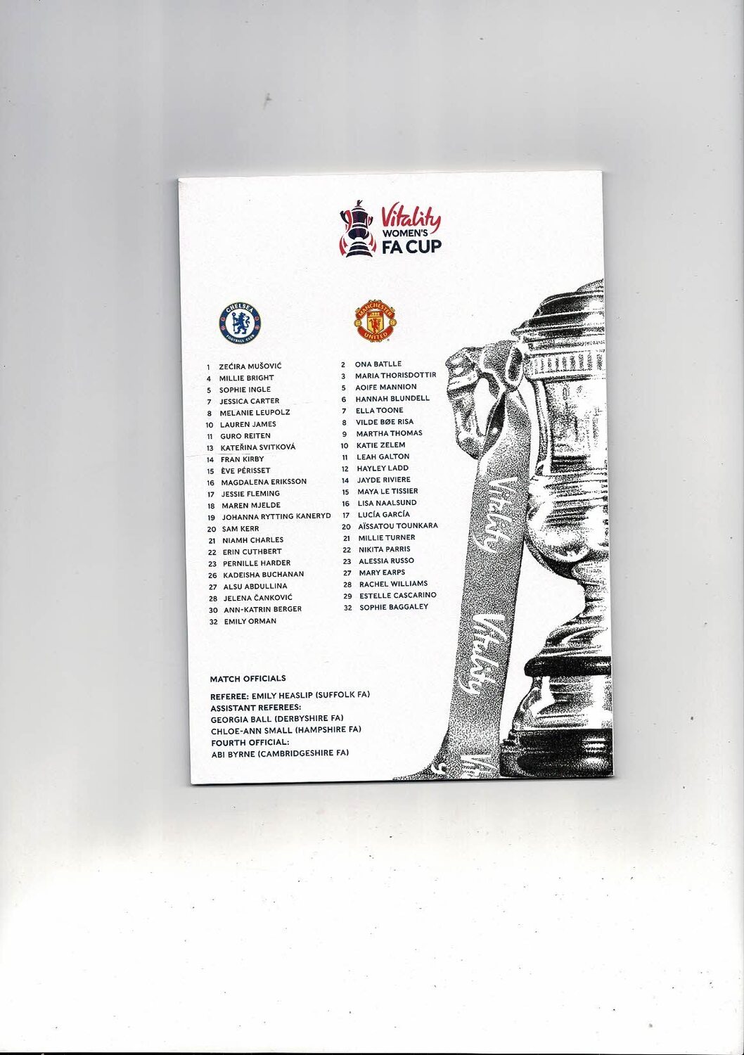 2023 Chelsea v Manchester United Women's FA Cup Final Football Programme