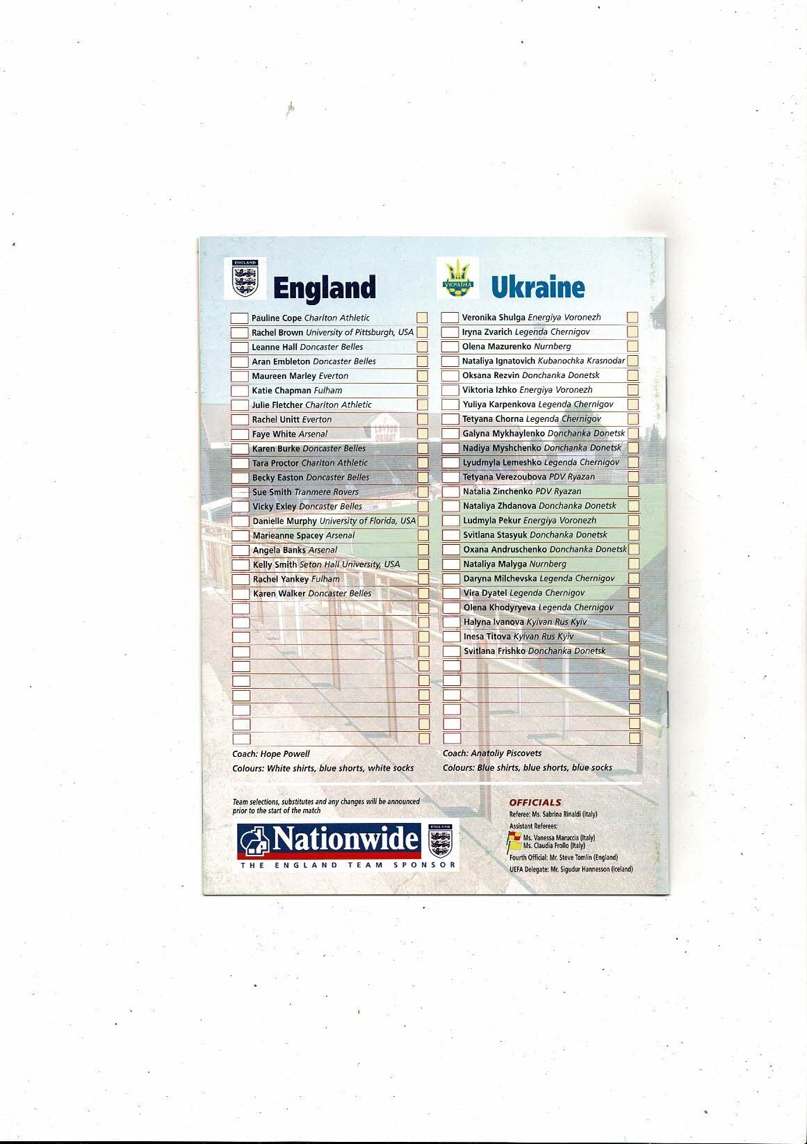 2000 England v Ukraine Women's International @ Leyton Orient