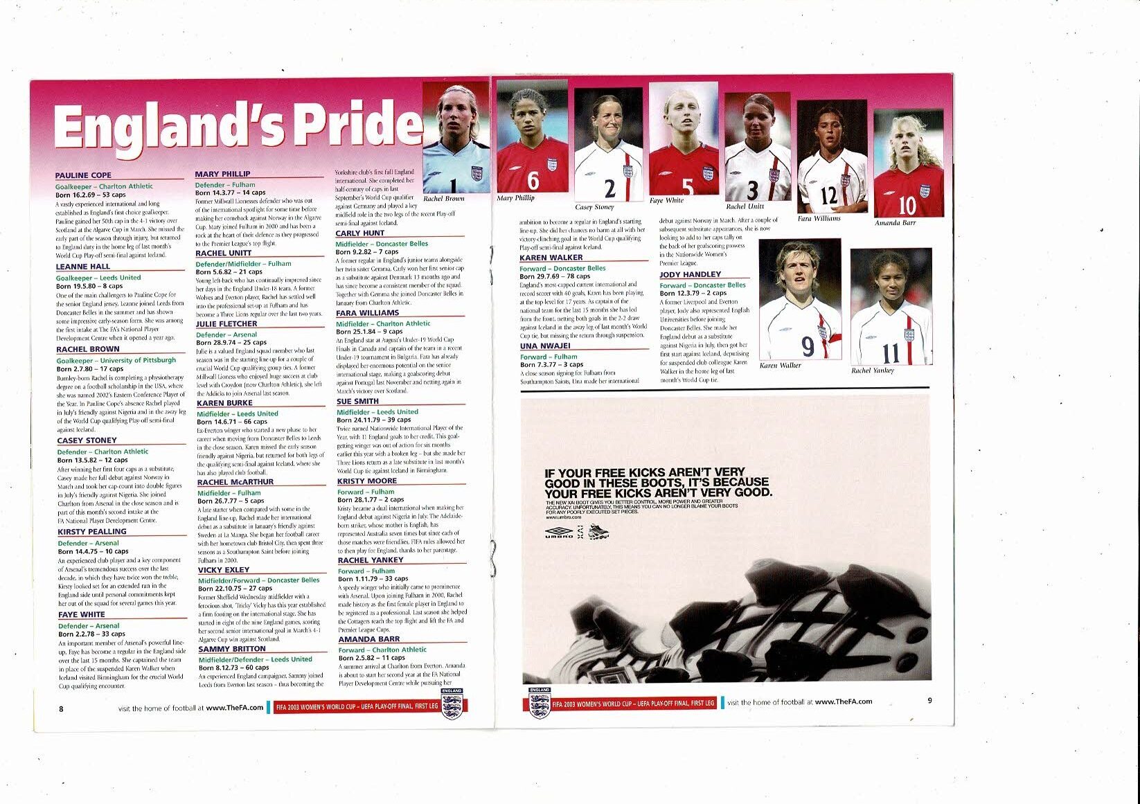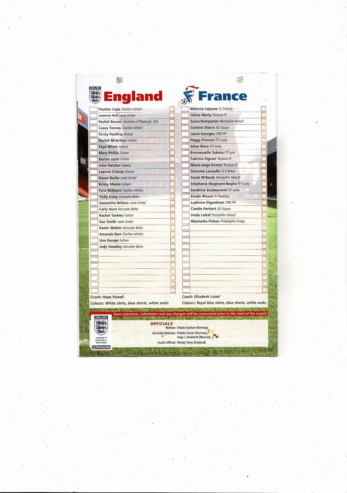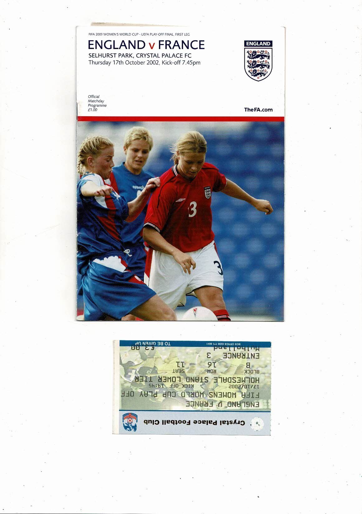 2002 England v France Womens International Football Programme + Ticket