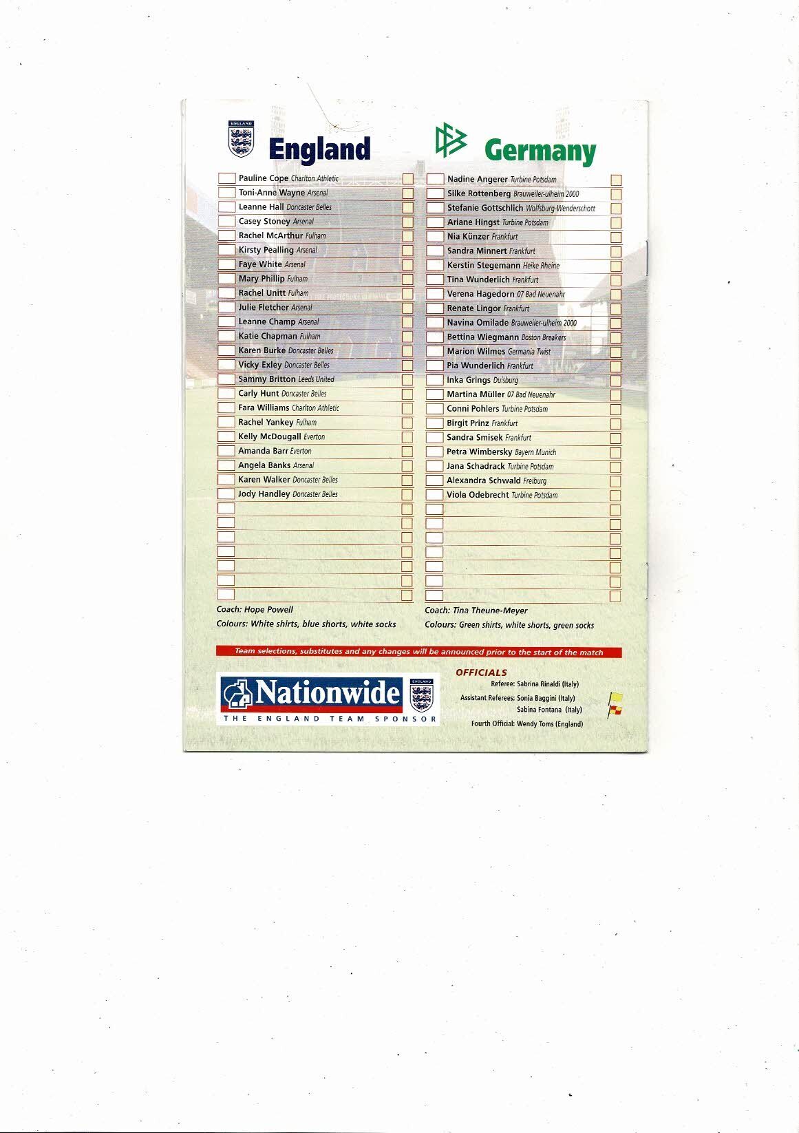 2002 England v Germany Women's International Football Programme + Ticket @ Crystal Palace
