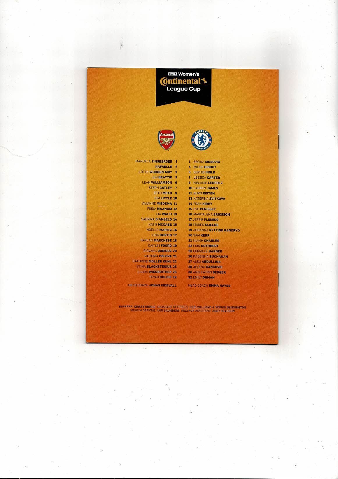 2023 Arsenal v Chelsea Womens League Cup Final Programme + Team Sheet