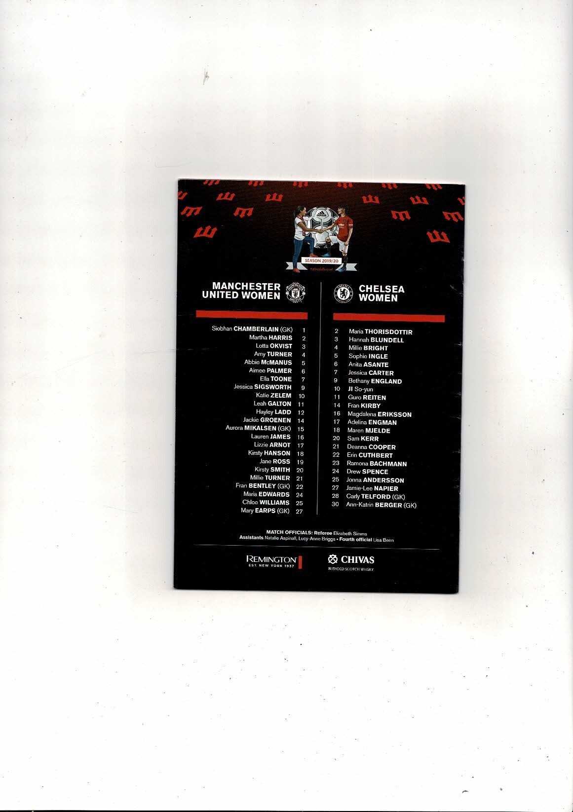 2020 Manchester United v Chelsea Womens League Cup Semi Final Football Programme