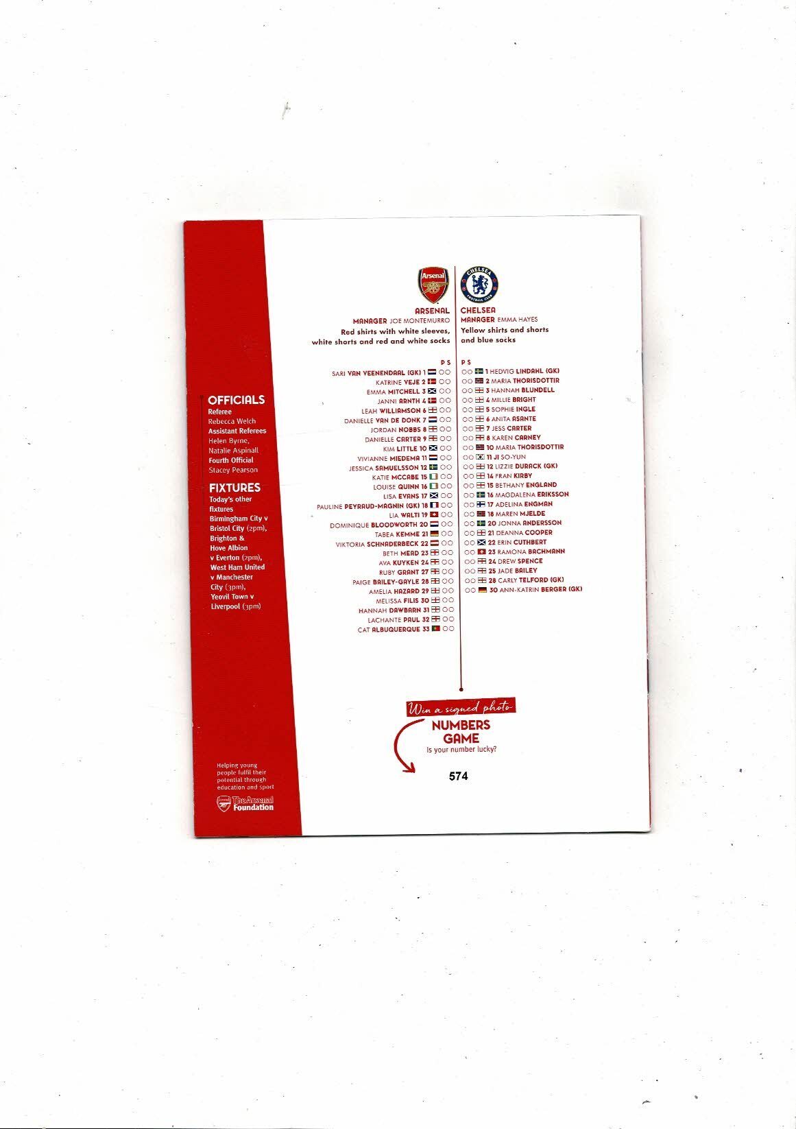 2018/19 Arsenal v Chelsea Womens Super League Football Programme