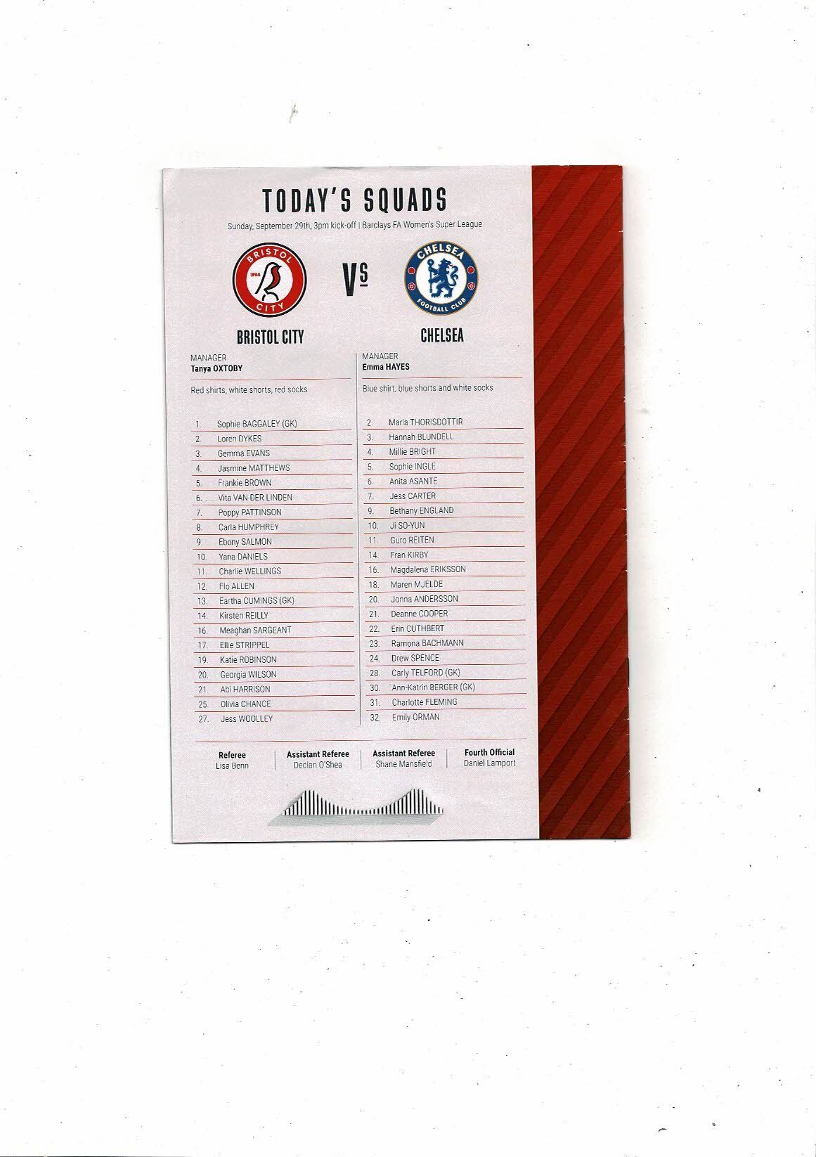 2019/20 Bristol City v Chelsea Womens Super League Football Programme