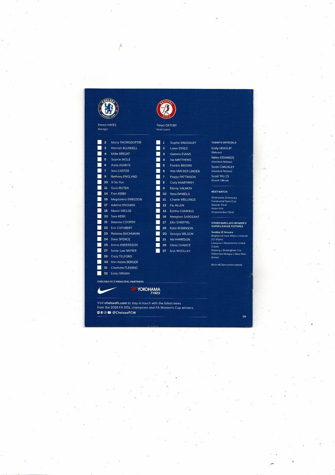 2019/20 Chelsea v Bristol City Womens Super League Football Programme