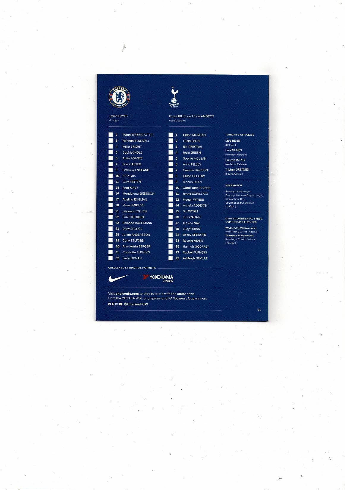 2019/20 Chelsea v Tottenham Hotspur Womens League Cup Football Programme