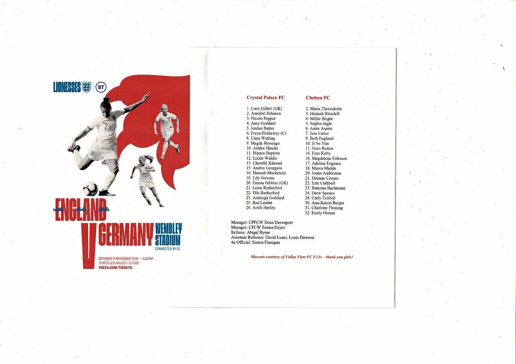 2019/20 Crystal Palace v Chelsea Womens League Cup Football Programme