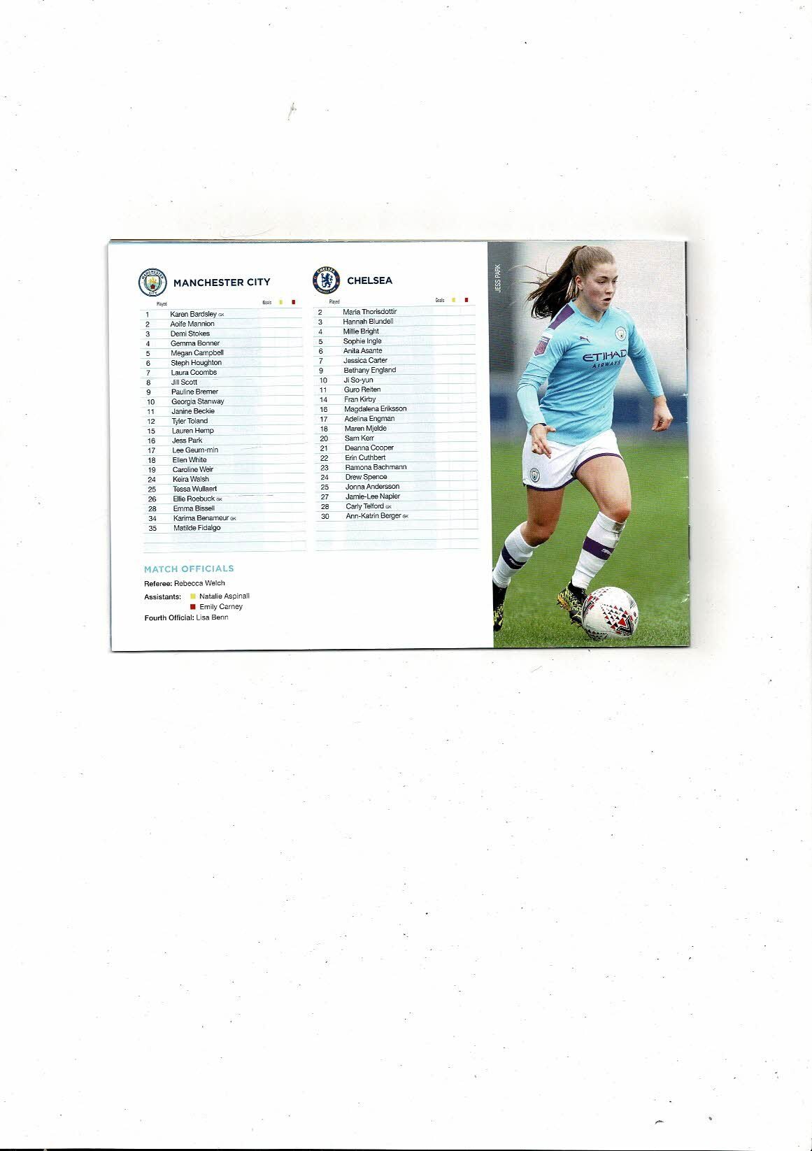 2019/20 Manchester City v Chelsea Womens Super League Football Programme