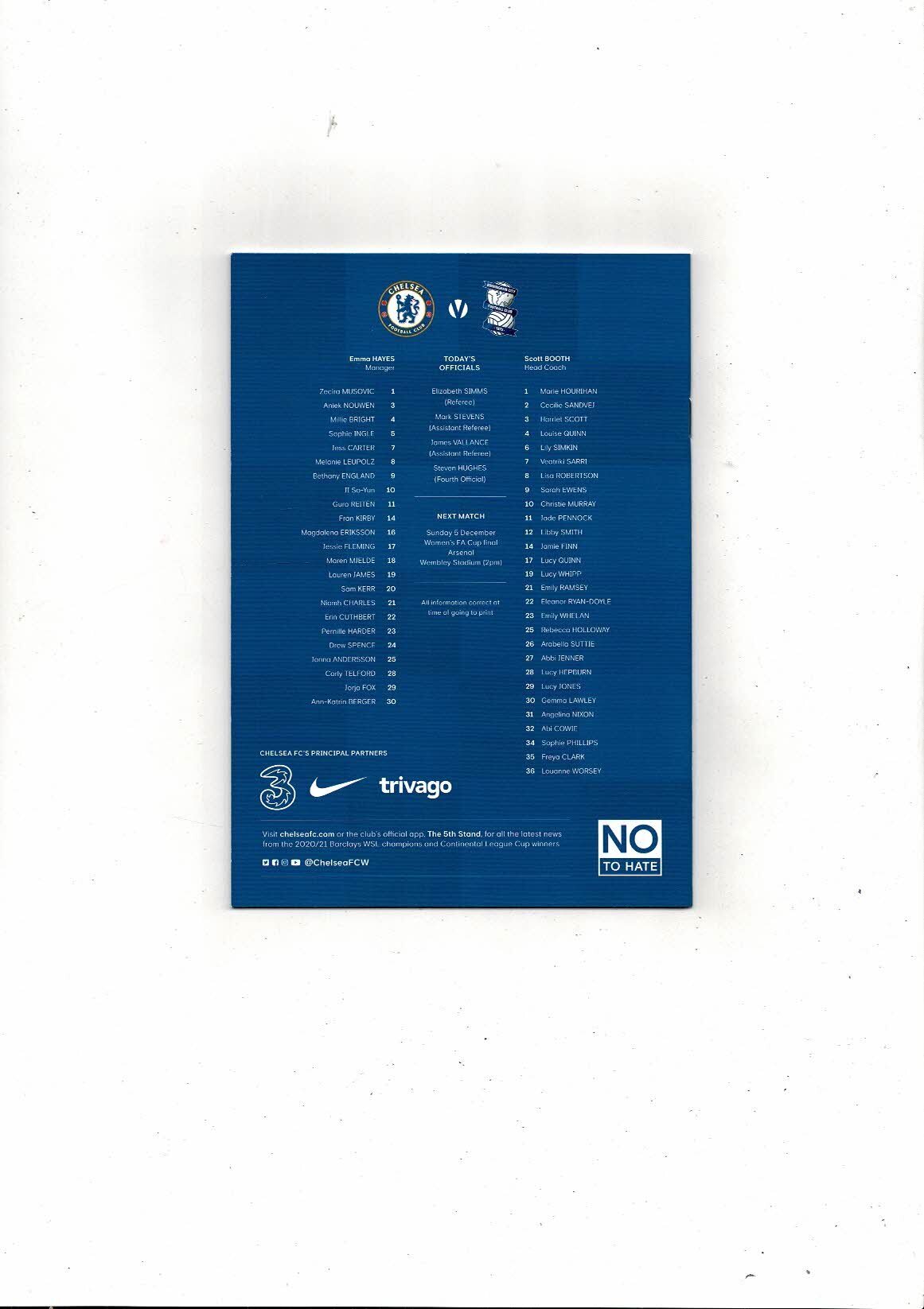 2021/22 Chelsea v Birmingham City Womens Super League Football Programme