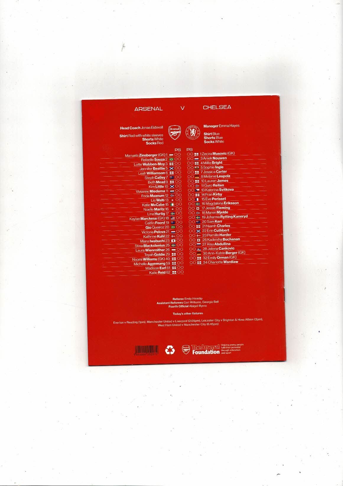 2022/23 Arsenal v Chelsea Womens Super League Football Programme