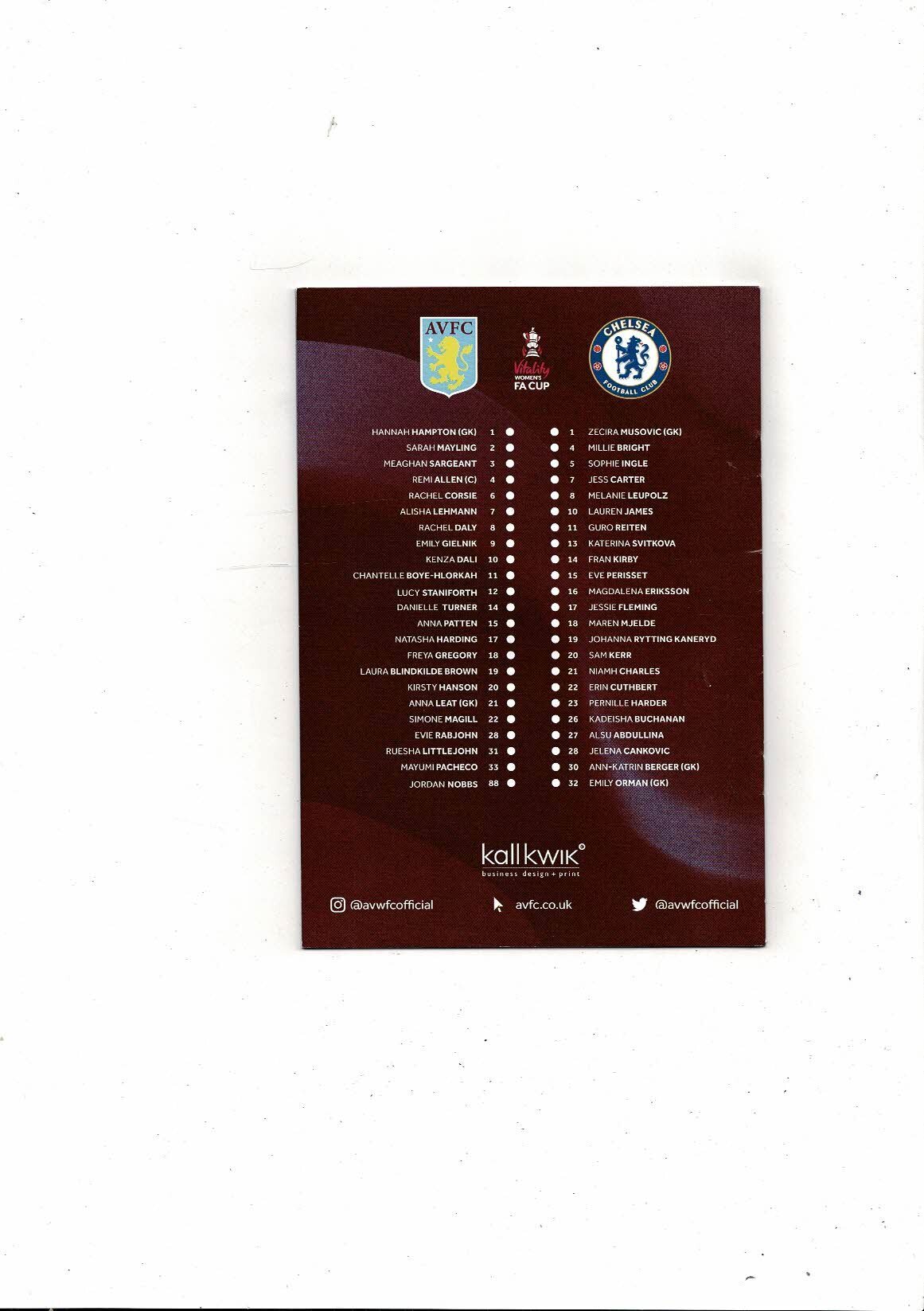 2022/23 Aston Villa v Chelsea Women's FA Cup Final Football Programme