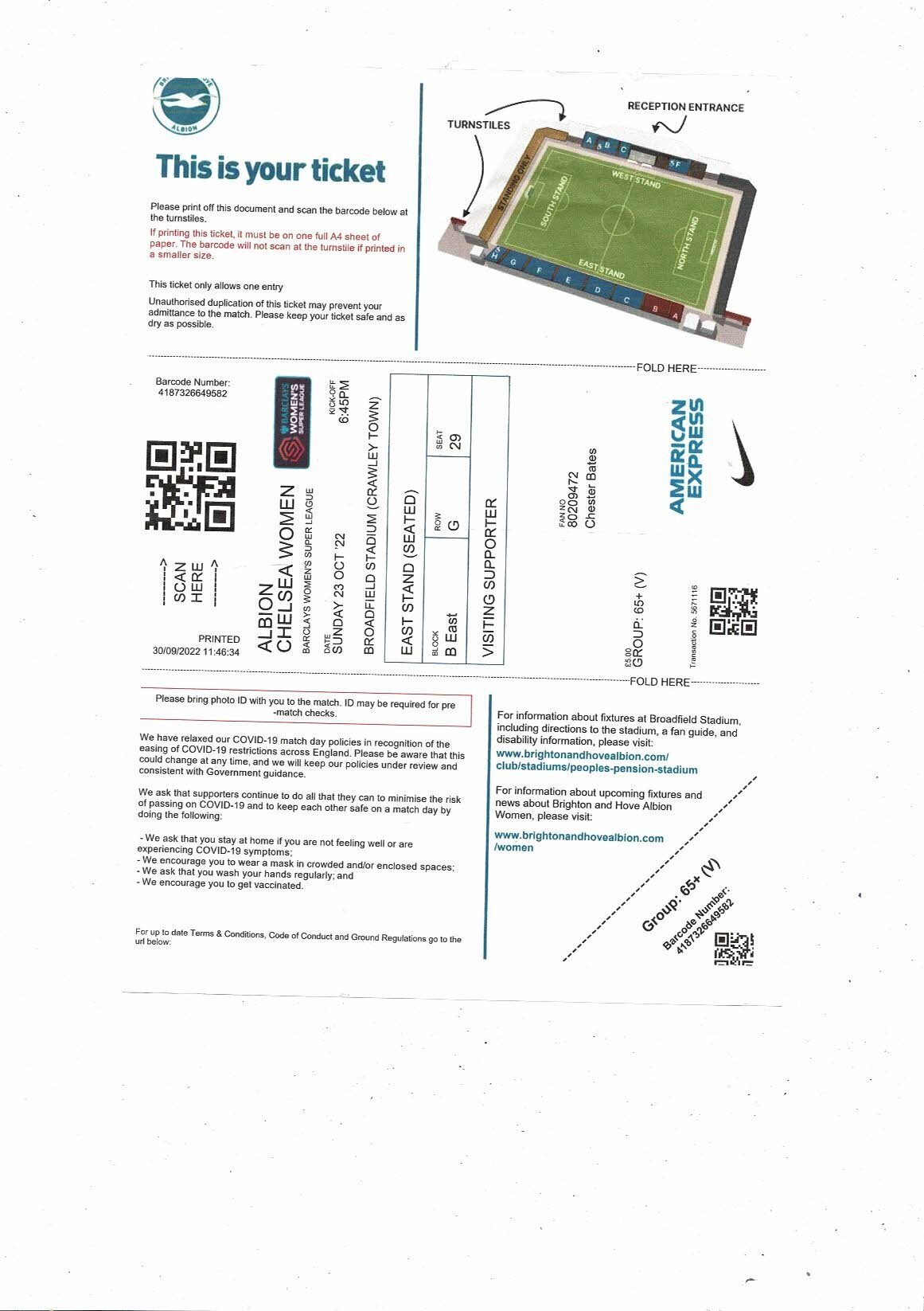 2022/23 Brighton v Chelsea Womens Super League Football Programme + Ticket