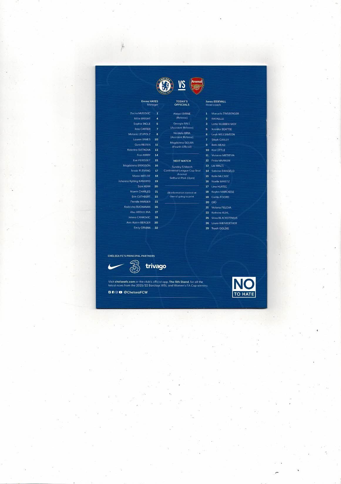 2022/23 Chelsea v Everton Women's FA Cup Football Programme