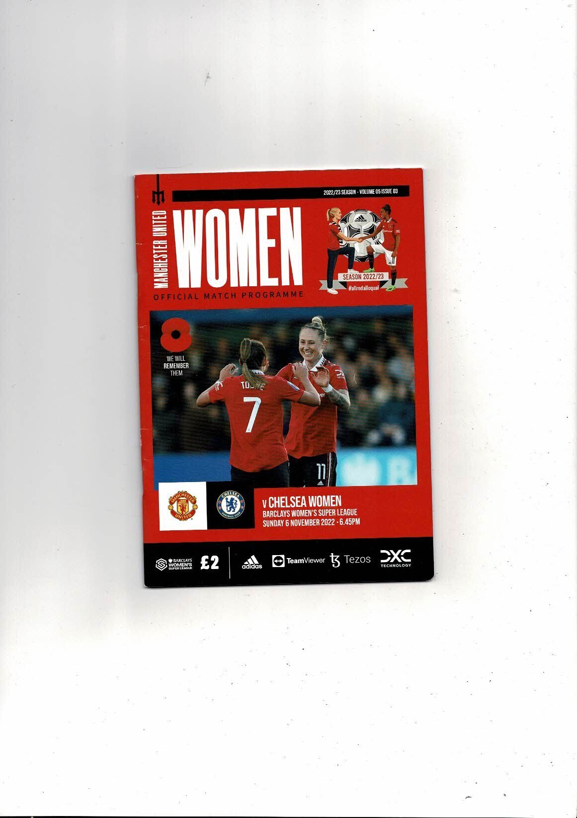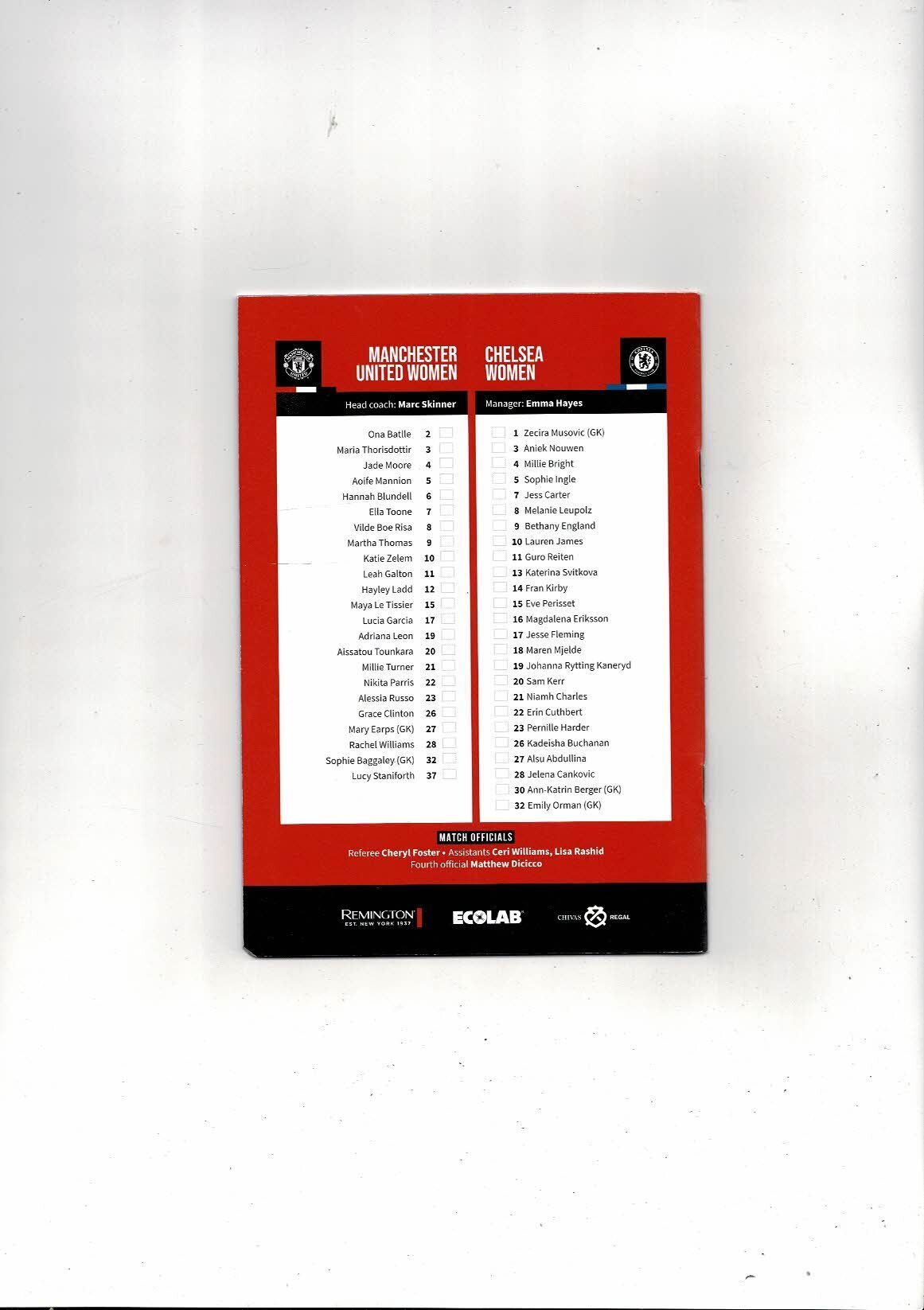 2022/23 Manchester United v Chelsea Womens Super League Football Programme