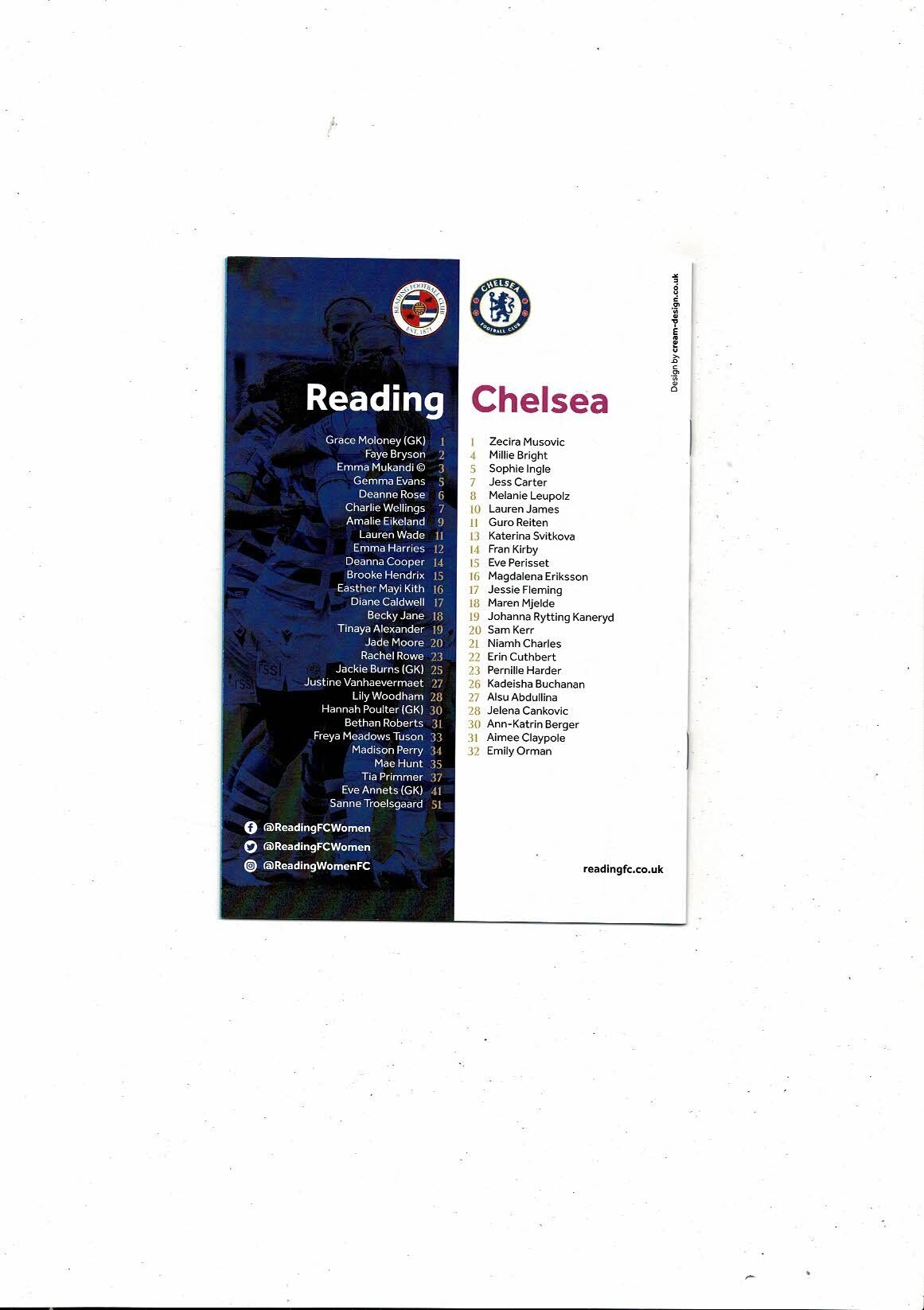 2022/23 Reading v Chelsea Womens Super League Football Programme